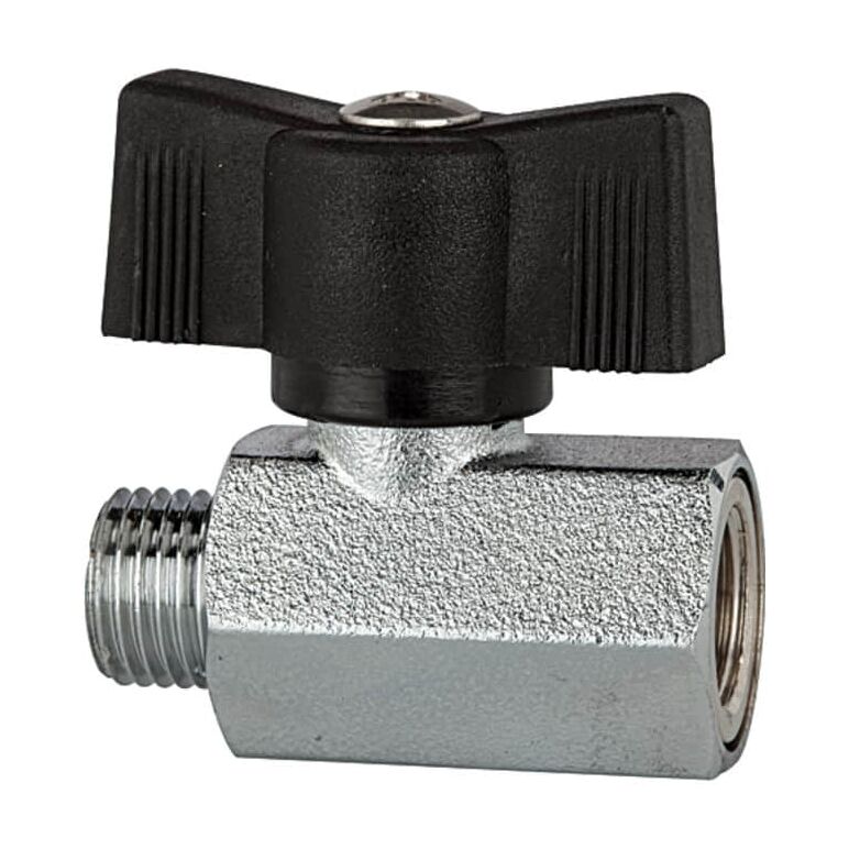 Mini-Kugelhahn, sandgestrahlt, ms vern., Flügelgriff, g 1/2 ig/ag - Riegler