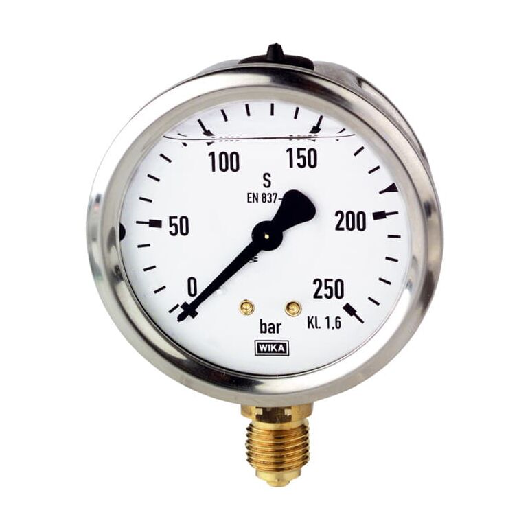 RIEGLER Glyzerinmanometer CrNi-Stahl G 1/4 unten 0 - 100,0 bar Durchmesser 63 mm