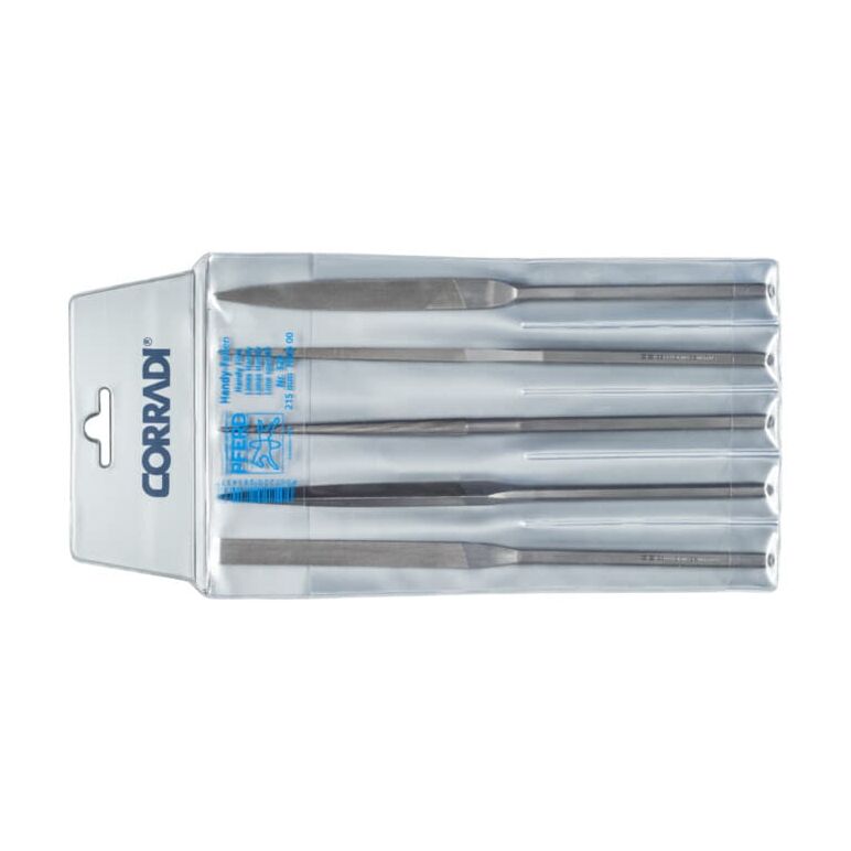 • Enthalten eine anwendungsorientierte Auswahl an CORRADI-Handy-Feilen für die Bearbeitung kleinster, schwer zugänglicher Stellen
