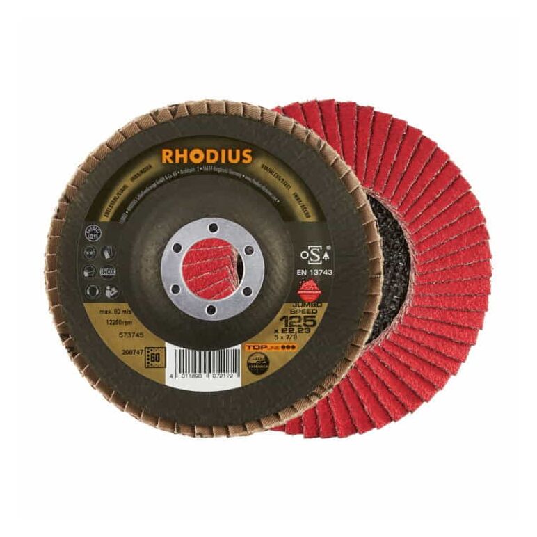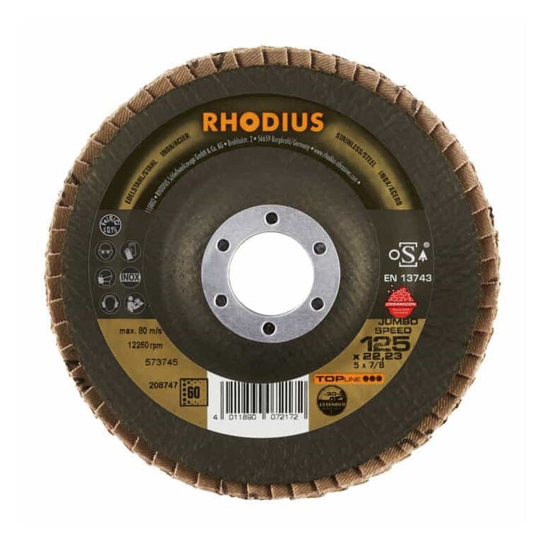Rhodius 208747 JUMBO SPEED Fächerschleifscheibe Durchmesser 125mm Bohrungs-Ø 22.23mm Edelstahl