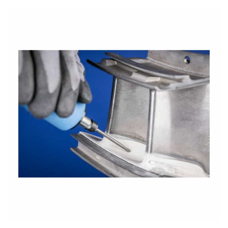 - Tropfenförmiger Frässtift nach DIN 8032 mit Verzahnung nach DIN 8033