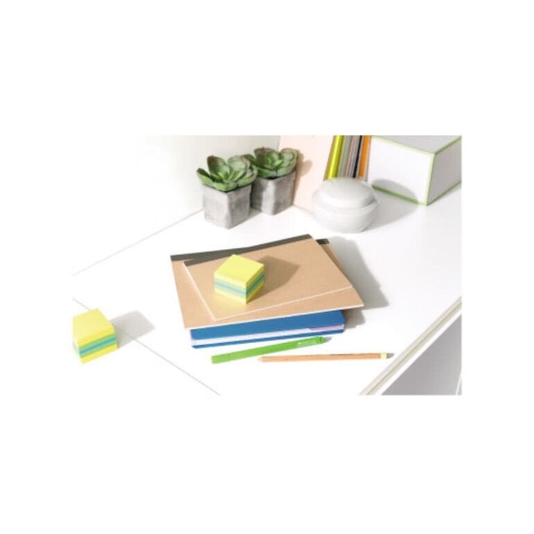 Mini Würfel in farbenfrohen Nuancen im praktischen Kleinformat. Für Kurznotizen wie Telefonnummer oder Name verwendbar, selbsthaftend.