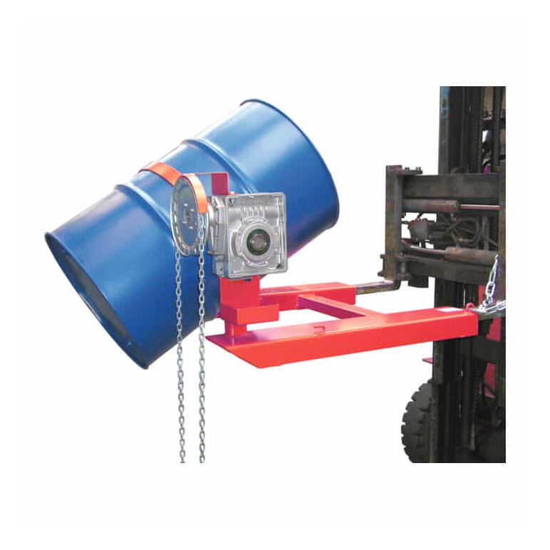 Aufnehmen, Transportieren und dosiertes Entleeren von 200-l-Stahl-Spundfässern und Stahl-Deckelfässern