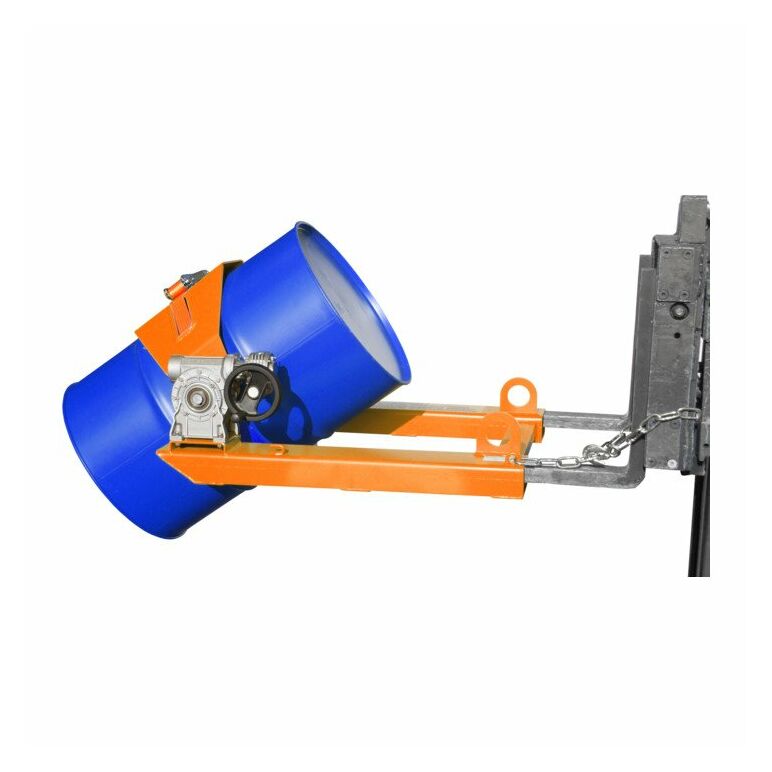 Transportieren, dosiertes Kippen, Wenden und Ablegen von Stahl-Spundfässern, Stahl-Deckelfässern, Rollreifenfässern, Kunststoff-L-Ringfässern und Kunststoff-Doppel-L-Ringfässern von 60 bis 220 Liter Inhalt sowie für 120/240-l-Müllbehälter