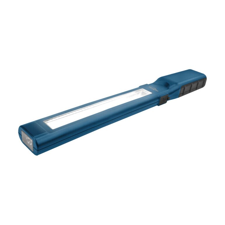 Wiederaufladbare Werkstattlampe für den professionellen Einsatz; dünn, robust & sehr hellEigenschaften:Deine Projekte, deine Leidenschaft, deine LeuchteANSMANN steht für Qualität und Zuverlässigkeit! Wir haben es uns zum Ziel gesetzt, hochwertige Qualitätsprodukte für Profis zu entwickeln. Die WL450R slim ist eine professionelle Werkstattleuchte mit einem schmalen Lampen-Design. Die handliche und zuverlässige Leuchte integriert sich mühelos in den anspruchsvollen Alltag für Arbeiten an der Hebebühne, Inspektionen, in Werkstätten oder Industrie - vor allem an schlecht erreichbaren Stellen.Leistungsstark, robust und wetterfestDurch den Einsatz neuester COB-LED-Technologie erzeugt die Lampe ein intensives weißes Licht. Die Hauptleuchte kommt dabei auf eine Helligkeit von bis zu 450 Lumen. Dank des breiten Abstrahlwinkels wird das helle Licht gleichmäßig verteilt, damit kleine Details ebenso wie große Flächen homogen ausgeleuchtet werden. Ein zusätzliches LED am Lampenkopf bietet ein leistungsstarkes Präzisionslicht, mit dem Sie garantiert nichts mehr übersehen. Das robuste Kunststoffgehäuse mit gummierten Teilen eignet sich optimal für die Benutzung bei unterschiedlichsten Bedingungen.Ergonomische Designkonzept durch und durchDas Gehäuse ist schmal und handlich geformt. Die gummierten Oberfläche sorgt für den nötigen Grip bei anspruchsvolle Arbeiten. Zwei integrierte Haltemagnete dienen der Fixierung und Ausrichtung der Leuchte an metallischen Gegenständen und zur einfachen Aufbewahrung am Werkstattwagen. Dadurch bleiben beide Hände frei für Ihre Arbeit in der Werkstatt, auf Baustellen oder bei Montagearbeiten. Mithilfe des großen Tasters kann zwischen der Haupt und Zusatz-LED unterschieden werden.Starker Akku - aufladen und loslegenEin fest verbauter Lithium-Ionen Akku mit 3,7 V sorgt für lange Leuchtzeit. Die Werkstattleuchte kommt dabei auf bis zu 4,75 Stunden, das Zusatzlicht auf ca. 30 Stunden Leuchtdauer. Die WL450R slim kann mithilfe des mitgelieferten Micro-USB Kabel über alle USB Schnittstellen aufgeladen werden – und das ganz schnell und einfach innerhalb von 5,5 Stunden! Die integrierte LED neben der Micro USB Buchse informiert Sie zuverlässig über den aktuellen Ladezustand. Ob mobil oder zu Hause, mit der WL450R slim haben Sie immer den passenden Begleiter, der Licht ins Dunkle bringt!Lieferumfang:WL450R slimMicro-USB-KabelBedienungsanleitung