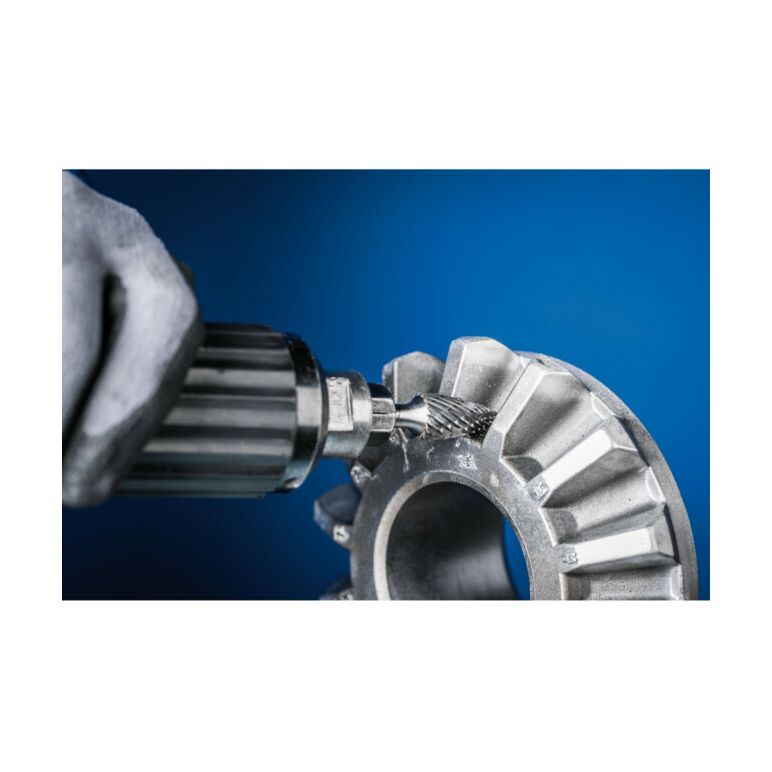 Eigenschaften:Spitzbogenförmiger Frässtift nach DIN 8032, Spitze abgeflacht