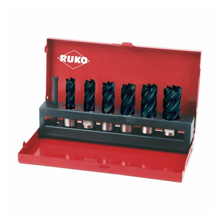 - CBN-geschliffenInhalt:6 Stck. Kernbohrer mit Weldonschaft (3/4") Ø 12, 14, 16, 18, 20, 22 mm1 Führungsstift Ø 6,35 x 77 mm für Schnitttiefe 30 mmin Metallkassette