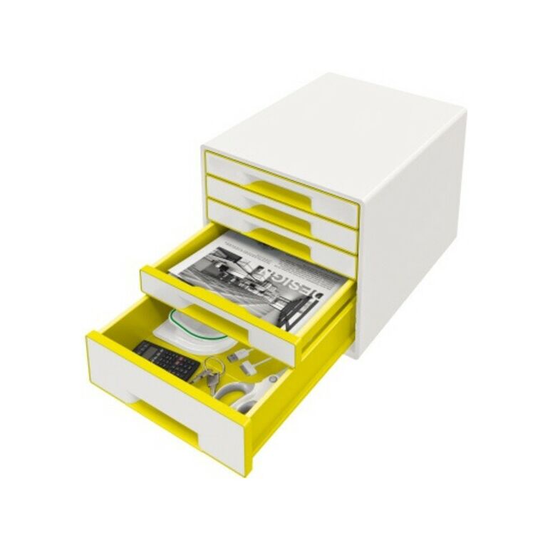 LEITZ Schubladenbox WOW Cube perlweiß/gelb 52142016, DIN A4 mit 5 Schubladen