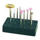 • Zum sauberen Aufbewahren von Micro-Bohrern, Schleifstiften, Bürsten und sonstigen rotierenden Werkzeugen mit Schaftdurchmesser von 2,35 - 3,2 mm