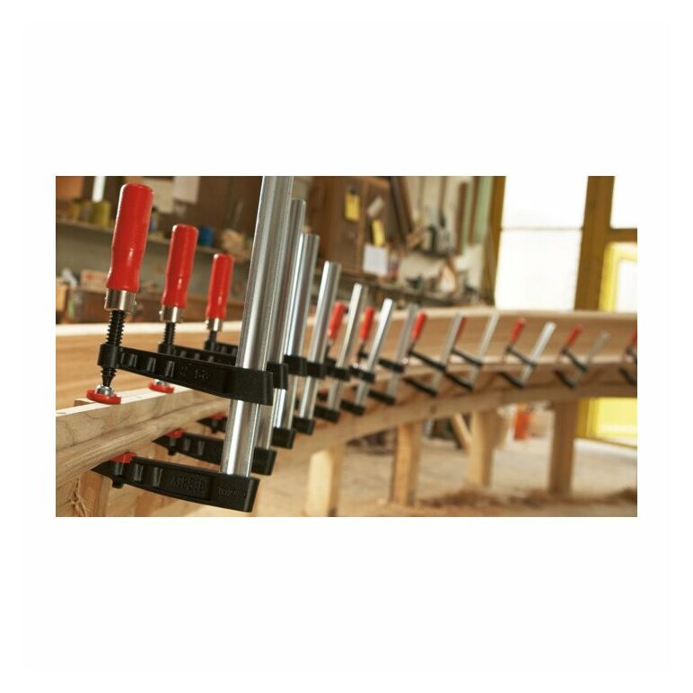 Eigenschaften:Spannkraft bis zu 6.000 NErgonomisch geformter HolzgriffWerkzeuglos wechselbare Druckplatten (ab 80 mm Ausladung)Mit Schutzkappen auf den SpannflächenStabile Hohlprofilschiene mit RiffelungBESSEY Rutschsicherung (ab 80 mm Ausladung)