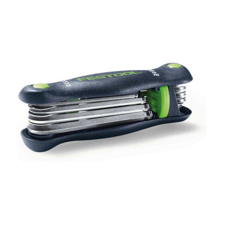 Farbgebung: Dunkelblau mit grünen Aushebetasten und Logodruck Festool