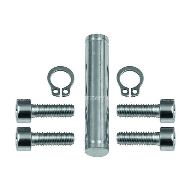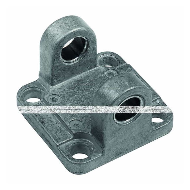 • Schwenkgabelbefestigung mit Buchsen, ISO 15552, ISO 21287, Ø50, 4 Schrauben, 1 Bolzen und Sicherung