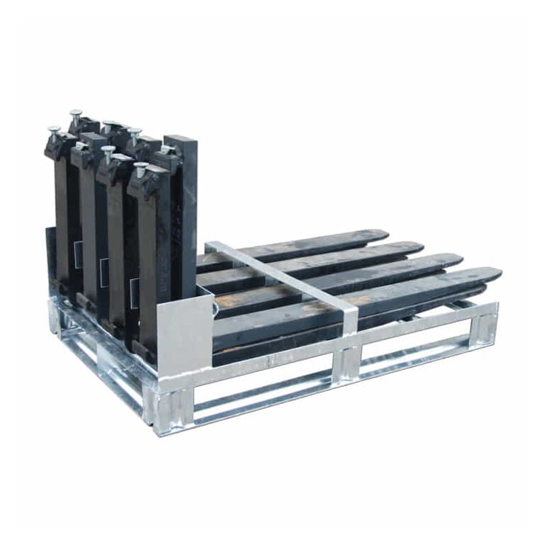 • Lagerung von 8 Gabelzinken je Palette, max. Gabelquerschnitt 180 x 90 mm