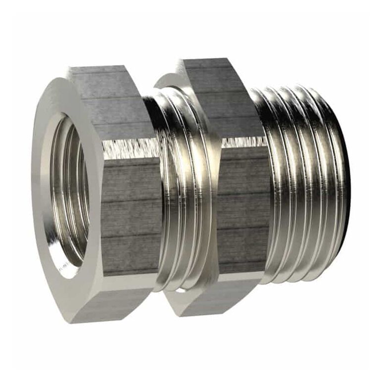 - Schottverschraubung, M28x1,5 a., G 1/2 i., SW1 30, SW2 36, Messing vernickelt, Arbeitsdruck max. 25 bar, Betriebstemperatur max. 150 °C