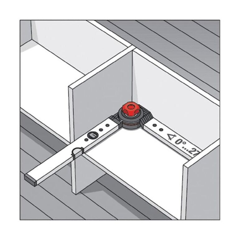 bestehend aus einer Alu-Profil-Wasserwaage mit einem variablen Alu-Profil-Schenkel · Wandstärke 1,6 mm · Messbereich 0 - 270° · die Indexscheibe des Gelenks kann in zwei verschiedenen Positionen eingelegt werden · danach können die Winkel wahlweise in 15°-Rasterung oder stufenlos eingestellt, fixiert und abgelesen werden Weitere technische Eigenschaften: · Ausführung: mit Wasserwaage