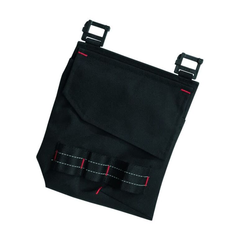 Gr. 19 x 23 cm (B x H) · 1 geräumige Volumentasche · reflektierender Hammer- und Werkzeughalter · Pattenklappe mit Klett zur Abdeckung der Taschen · Schnellverschluss zur Befestigung an den FHB-Hosen