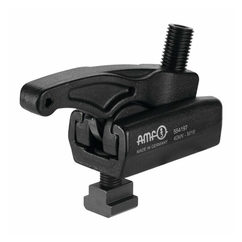 • Spannkraft 30 bzw. 49 kN mit Anzugsmoment bei ca. 100 Nm.Geschmiedetes Spannelement aus legiertem Vergütungsstahl, schwarz verzinkt.In Höhe und Länge stufenlos verstellbar.Niedrige Bauhöhe.