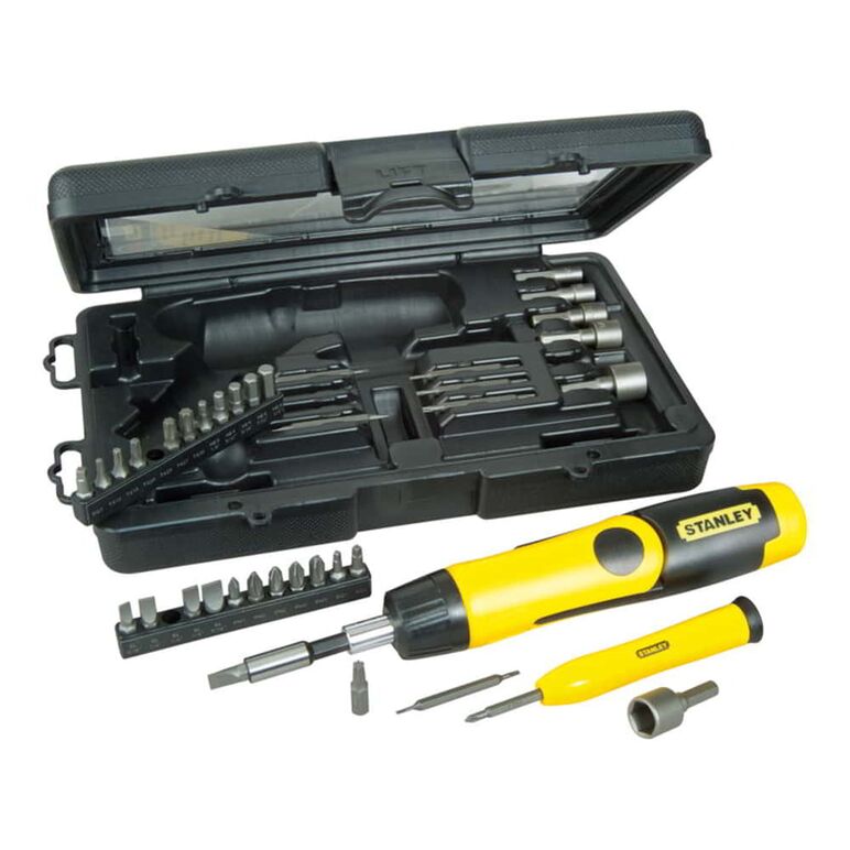 0-63-038 40-teiliges Set Ratschenschraubendreher und Zubehör - 3-Positionen-Gelenkschraubendreher für bequemes Schrauben - Stanley