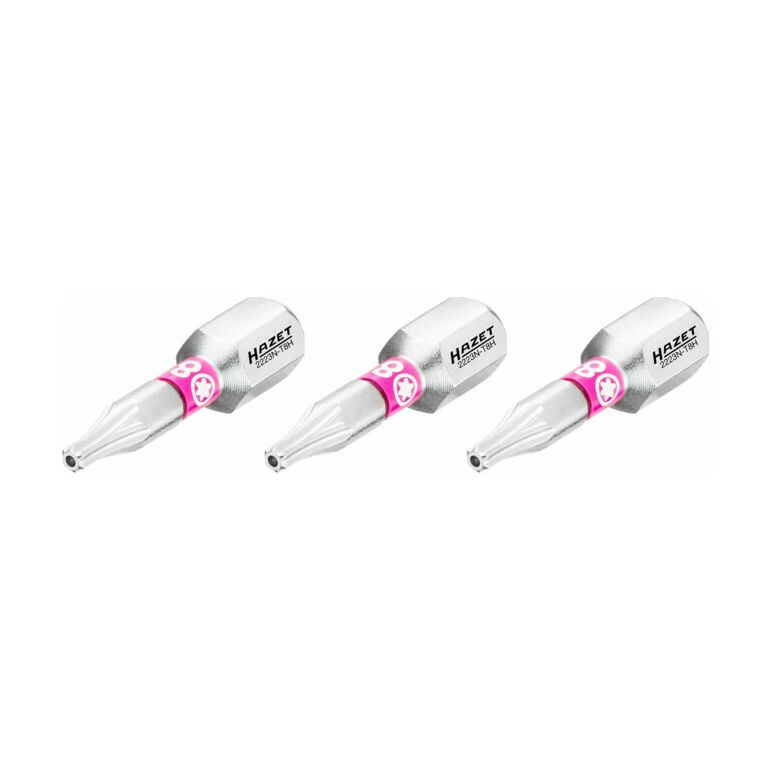 HAZET Bit 2223N-T8H/3, Sechskant massiv 6,3 (1/4 Zoll), Tamper Resistant TORX® Profil, T8H, Anzahl Werkzeuge: 3