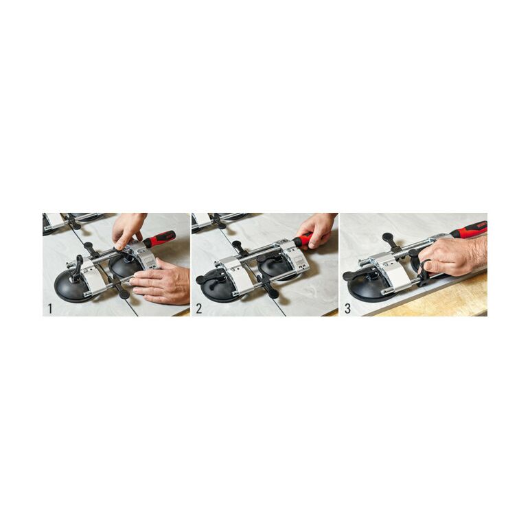 Eigenschaften:Zum Verspannen und Positionieren von Bauteilen mit glatter Oberfläche, wie z.B. Keramik, Granit, Corian®, Kunststoff, Blech und Glas, die geringe Spannkräfte erfordern (bis zu 260 N)Spannhebel an den Vakuumsaugern garantieren eine schnelle HandhabungExzenterhebel zum Ausgleich unter- schiedlicher Höhen am Stoß