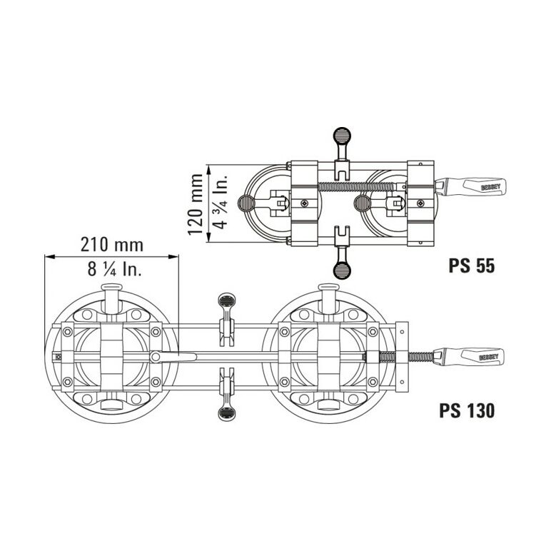 BESSEY Plattenspanner PS 55, Spannweite 10 - 55 mm Breite 144 mm Länge 363 mm, Spannhebel an den Vakuumsaugern garantieren eine schnelle Handhabung, Gewicht 1,68 Kg