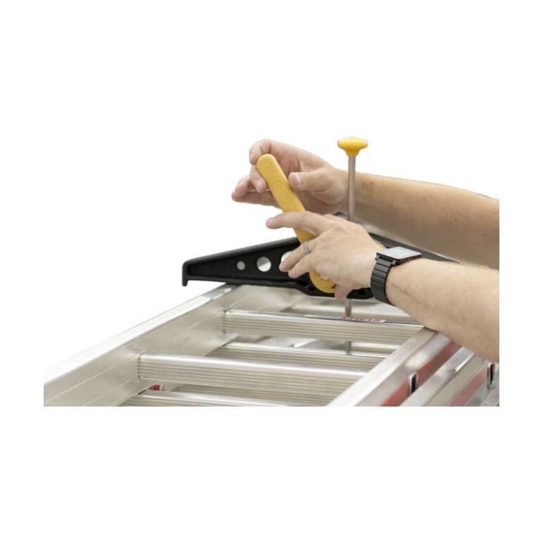 • Schnelle und sichere Befestigung und Sicherung von Leitern an Lastenträgern und Schwerlastkörben