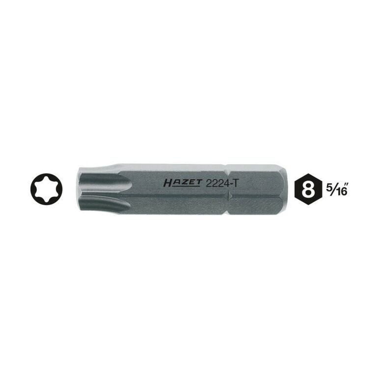 HAZET Bit 2224-T45 Sechskant massiv 8 (5/16 Zoll) Innen TORX Profil T45