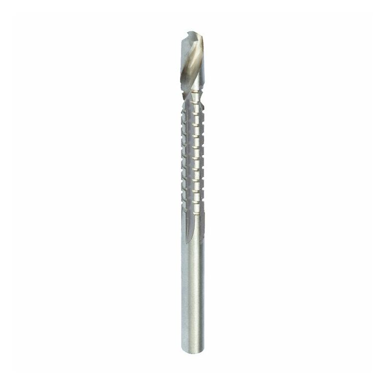 Eigenschaften:HSSSpitzenwinkel 118 °Kegelmantelanschliffzum Bohren und Fräsen in Blech, Holz, Kunststoff und dünnwandigen Materialienkurzer Spiralbohrerteil, übergehend in Frässchneiden und SpanbrechernSpitzenwinkel: 118°Schneidstoff: HSSBeschichtung: unbeschichtet