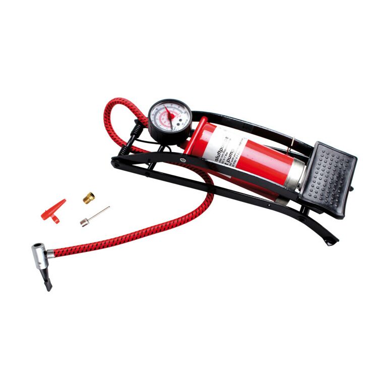 Eigenschaften:Zum Aufpumpen von z.B. Fußbällen, LutftmatratzenAuch geeignet für PKW- und Fahrradreifen mit Dunlop- und SchraderventilenManometer mit Doppelanzeige 0 - 7 bar (0 - 100 PSI)Flexibler Schlauch, ca. 0,5 mMit KlemmhebelZylinder: Ø 55 x Länge 120 mm