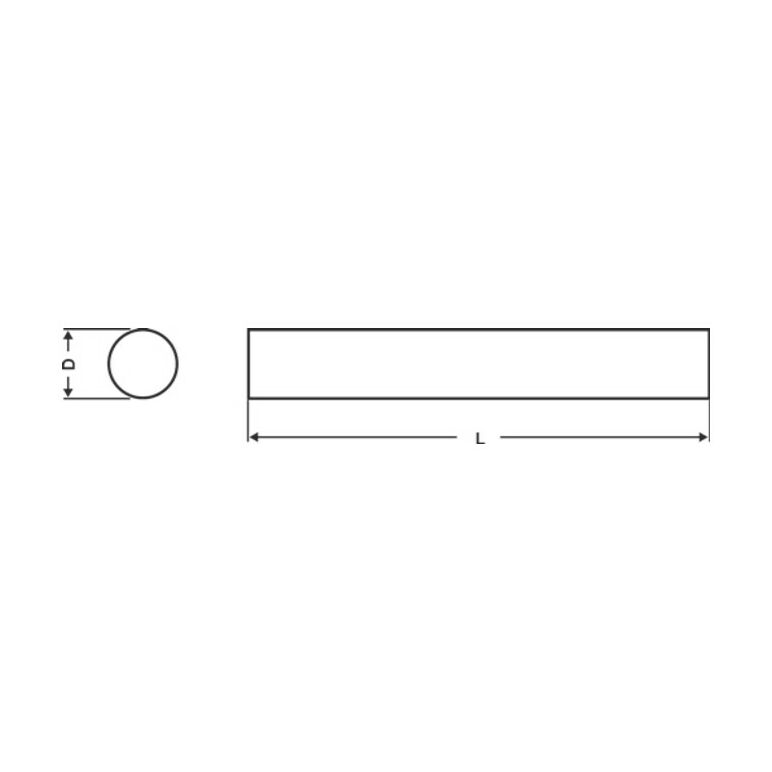 HSS-EW9Co10 Werkstoff 1.3207 · DIN 4964 Form A: rund · gehärtet, angelassen und fertig geschliffen · Enden gerade und ungeschliffen · Härte 65-69 HRC · Durchmesser-Toleranz: h8 Längentoleranz: +/- 2 mm Weitere technische Eigenschaften: · Länge L: 80mm · Ø D: 8mm