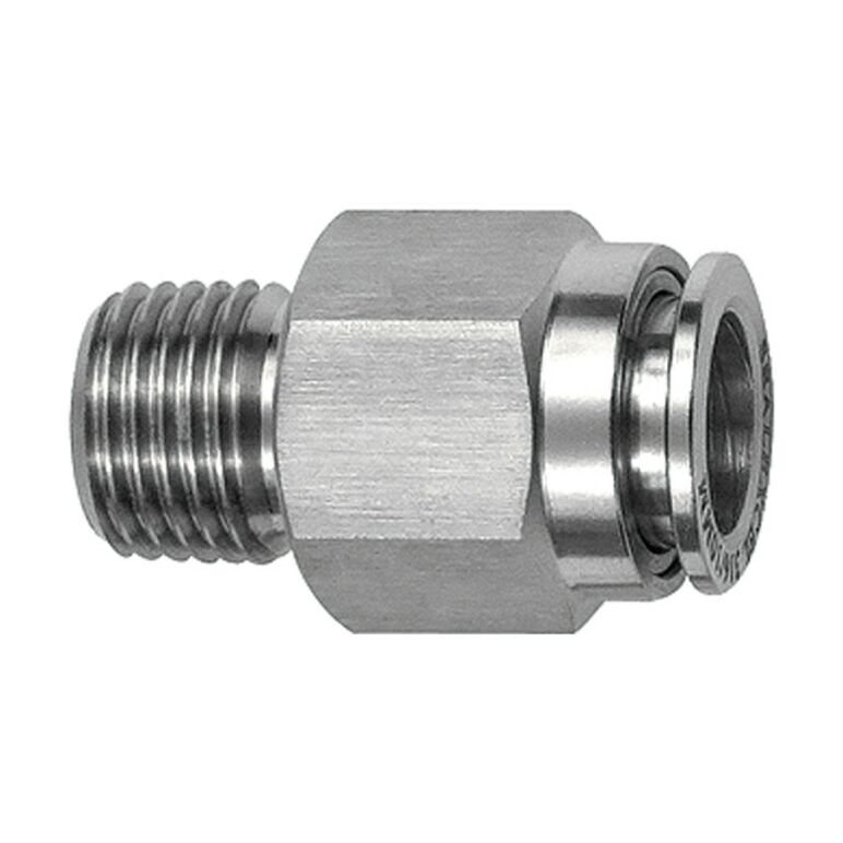 Eigenschaften:Gerade Steckverschraubung, Außensechskant, R 1/8 a., für Schlauch-Außen-Ø 4 mm, Arbeitsdruck max. 20 bar, Edelstahl 1.4404. Für den Einsatz in aggressiveren Umgebungen und bei korrosiven Medien