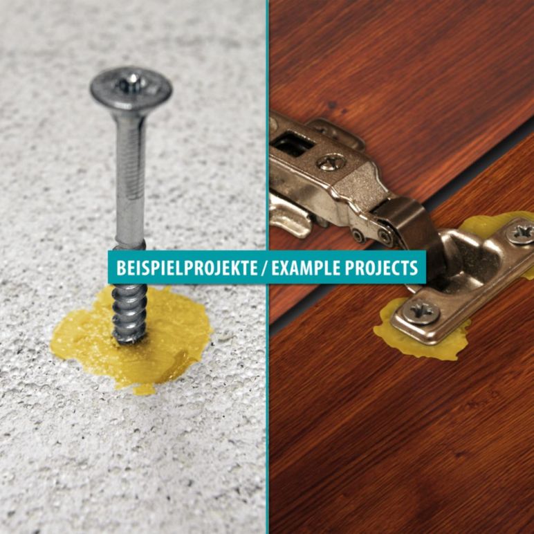 - Inhalt der Kartusche (25 ml) reicht für mindestens 4 Bohrlöcher (bei 10 mm Durchmesser und 50 mm Tiefe)