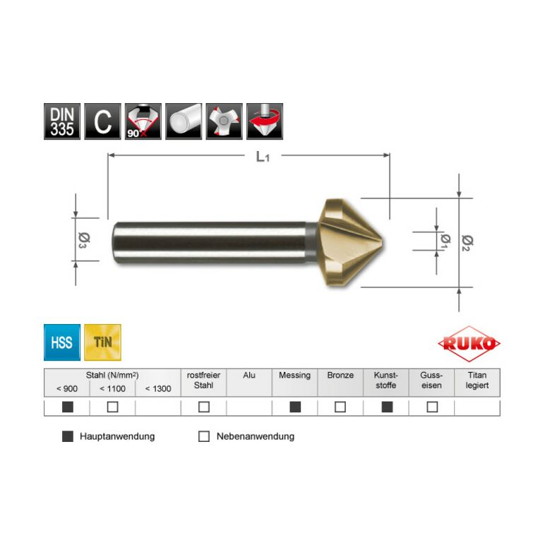 HSS: Hochleistungs-Schnellarbeitsstahl für Bohrungen in gut bearbeitbare Materialien mit einer Festigkeit von bis zu 900 N/mm².