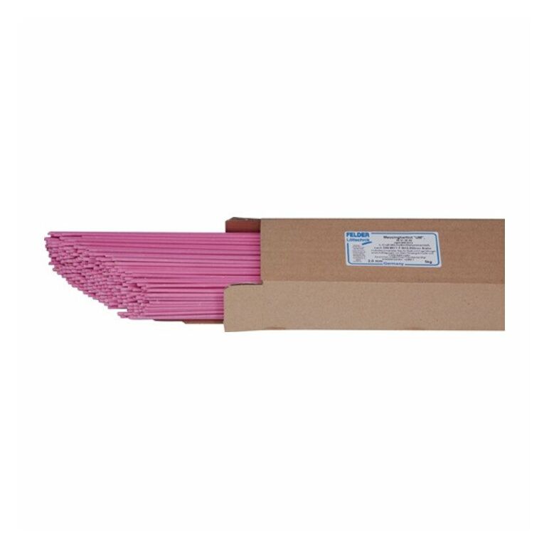 Stäbe flussmittelummantelt · Eigenschaften und Anwendungsgebiete: zum Hartlöten von Kupfer, Nickel und Stahl sowie zum Schweißen von Messing und Bronze, ISO 3677, B-Cu60Zn(Si)(Mn), Cu 670 DIN EN ISO 17672 (früher L-CuZn40, DIN 8513), flussmittelummantelt, DIN EN 1045 FH 21 Weitere technische Eigenschaften: · Länge: 500mm · Arbeitstemperatur: ca. 900°C · Ausführung: flussmittelummantelt · Inhalt je Karton: 5St.