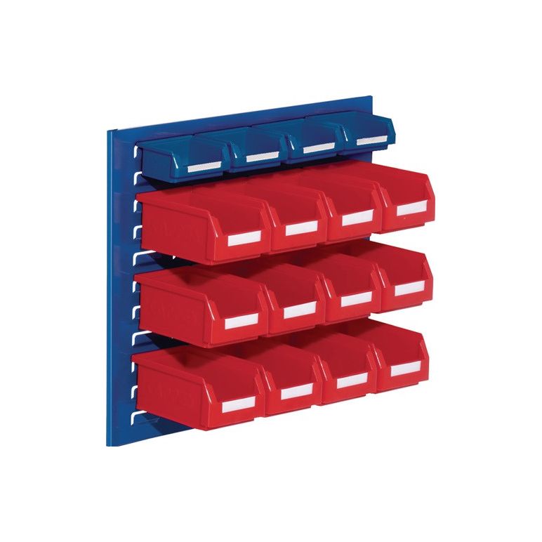 Rasterplan Sichtlagerkastenset ( 9000428240 ) H450xB500xT250mm Stahlblech/Polyethylen 12 x Gr.7 rot / 4 x Gr.8 blau