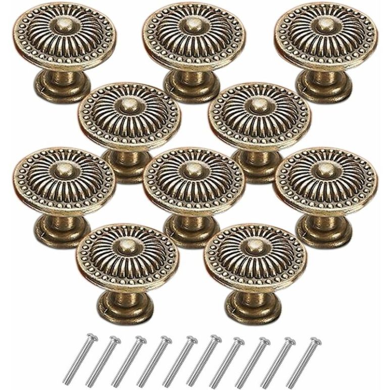 10 Stück Vintage Schrankknöpfe Schubladenknöpfe 29 mm, Blumenmuster Messing, Schubladengriffe für Möbel Küche Tür Schrank, Bronze