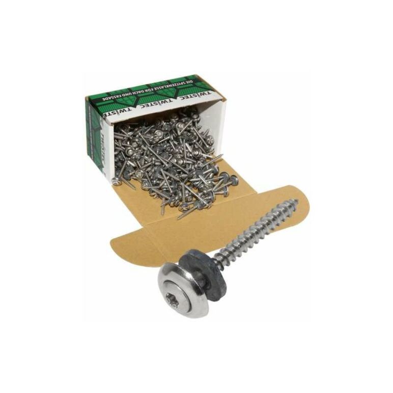 TWISTEC® Spenglerschrauben (3-teilig) Edelstahl Mit TX20-Antrieb Alu- und Blechprofile Kaminabdichtungen Flanschbefestigungen Maurerabdeckungen Wandanschlussprofile Lichtkuppeln Dichtscheibe: 15 mm Auf Mauerwerk, Holz sowie Unterkonstruktionen bei Dach und Wand