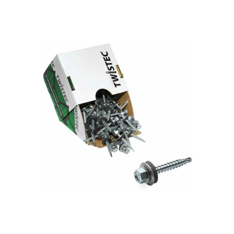 TWISTEC® Mit verzinktem Gewinde 6kt. Bohrschraube SW 8 verzinkt Dichtscheibe 14 mm mit aufgezogener EPDM-Dichtung Für Verschraubungen in Holz Gewinde Ø 4,8 mm reduzierte Bohrspitze