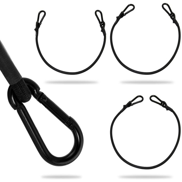 3x Spanngummi mit Karabiner 1x100cm, 1x80cm, 1x 60cm in Schwarz Latex Spanngurte