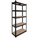 MIDORI Markenware ? Lagerregal Produkt-Besonderheiten Schneller und einfacher Aufbau ohne Werkzeuge und Schrauben Rostfrei durch pulverbeschichtetes Gestell Robuste Regaleinlagen aus MDF Spanplatten Zusätzliche Stabilität durch die mitgelieferten Querstreben Mehr Stabilität durch Wandmontage Höhe der Regalböden ist frei wählbar Wandelbar zu Werkbanken Technische Daten Maße (H x B x T): ca. 180 x 90 x 40 cm Gewicht: ca. 14,50 kg Material des Gestells: pulverbeschichtetes Metall Anzahl der Böden: 5 Material der Böden: MDF Holzfaserplatte Tragkraft pro Boden: 175 kg (gleichmäßige Lastverteilung) Maximal empfohlene Traglast: 875 kg Farbe: Anthrazit