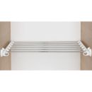 Self System von Servetto ermöglicht freie Gestaltungsmöglichkeiten im Schrankraum. Jeder Halter und Auszug ist für seitliche Montage gerichtet. Mit dem optionalen Zubehör ist aber auch eine Montage unter einem Oberboden oder an einer (Rück-)Wand möglich. Hier überzeugt der Komfort einer beidseitigen Bestückung mit Gürtel-, Hosen-, oder Krawattenhaltern. Zur seitlichen Befestigung am Korpus. Kugelkäfigführung für komfortable Laufeigenschaften. Zur Befestigung unter einem Fachboden mit Befestigung C1. Mit vormontierten Befestigungsplatten. Lieferumfang : Befestigungsmaterial Oberfläche: poliert, weiß Material: Aluminium, Kunststoff Höhe(mm): 82 Ausstattung: 6 Stangen Einbaubreite(mm): 600 - 1000 Tiefe(mm): 505 Tragkraft(kg): 8 Type: Self System Marke: Servetto Inhaltsangabe (ST): 1