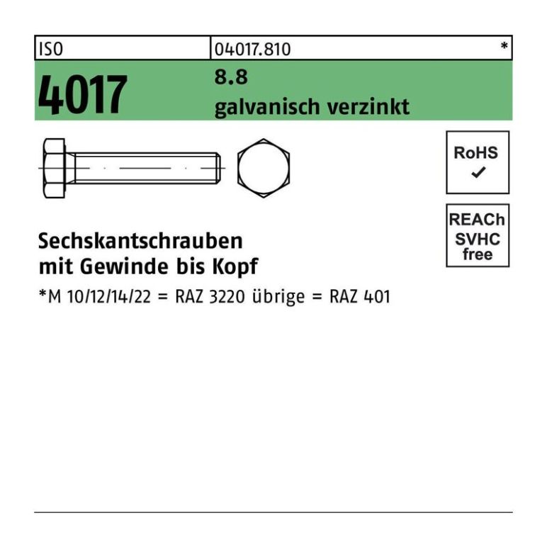 Sechskantschraube ISO 4017 VG M12x 60 8.8 galv.verz. 100 StückISO 4017 8.8 galvanisch verzinkt Sechskantschrauben mit Gewinde bis Kopf - Abmessung: M 12 x 60 VE=S (100 Stück) Weitere technische Eigenschaften: · l: 60mm · Gruppencode: 04017.810 · Norm: ISO 4017