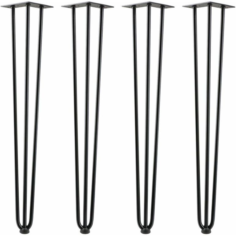 Zelsius 4er Set Tischbeine aus Stahl, Schwarz, (H) 71 cm, 3 Streben, Haarnadelbeine, Möbelbeine
