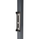 Einbau-Anschlag für kleine Metall-, Aluminium- und PVC-Tore. Das Edelstahl-Verankerungssystem verhindert das Aushebeln des Tores. Mindestprofiltiefe 30 mm innovative Quick-Fix-Befestigung einfache rechts/links Umstellung Richtung: universal Einbautiefe(mm): 15 Material: Edelstahl /Kunststoff schwarz Abmessung(mm): 255 x 57,7 x 8 Marke: Locinox Type: SFKI-QF Inhaltsangabe (ST): 1