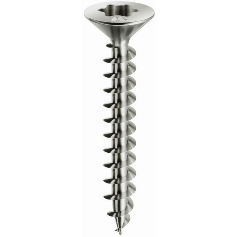 Details : Geschmierte Universalschraube, geeignet für das Einschrauben ohne Vorbohren in: melaminbeschichtete Spanplatten, Holz, Beschlagteile, Feinblech, Kunststoffe und Dübel. TX-AUSDRUCK TX-AUSDRUCK mit hoher Tiefe, der dank der vertikalen Wände die Schraubkraft vollständig überträgt und ein Verrutschen des Bits und den Verschleiß des Ausdrucks verhindert. Nur drei TX-Abdrücke, um das gesamte Sortiment zu verschrauben: Durchmesser: 3 TX-Abdruck 10 Durchmesser: 3,5 - 4 - 4,5 - 5 Abdruck TX 20 Durchmesser: 6 TX 30 Abdruck. KOPF Verstärkt, um die Übertragung hoher Drehmomente beim Schrauben zu ermöglichen. GEWINDE mit glattem, spitzem Profil, das ein schnelles Eindrehen mit geringem Kraftaufwand ermöglicht und das Risiko von Holzrissen verringert. OGIVE SPITZE, die bis zum Ende mit einem Gewinde versehen ist, garantiert einen sicheren Halt ohne Abrutschen auch auf melaminhaltigem Holz und ein allmähliches und konstantes Eindringen der Schraube. Das Ergebnis ist ein leichteres