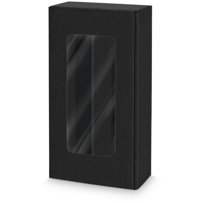 25 x Präsentkarton für 2 Flaschen 360x180x90 mm Kraftpapier Fenster Schwarz - Schwarz
