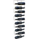 Weinregal für die Wandmontage aus Metall mit Platz für bis zu 10 Flaschen. Aus Metall geschmiedet und pulverbeschichtet in der Farbe Schwarz. Mit abgerundeten Ecken an den Flaschenablagen. Die Flaschen können einfach in die dafür vorgesehenen Ablagen eingelegt werden, durch die waagerechte Lagerung wird das Austrocknen des Korkens verhindert und somit das Eindringen von Luft. Das Flaschenregal wird inkl. Befestigungsmaterial geliefert, welches verdeckt hinter den eingelegten Weinflaschen montiert wird. Der sichere Halt an der Wand erfolgt jeweils mit zwei schwarzen Schrauben an der Ober - und Unterseite. Maße: Höhe 105 cm, Breite 33 cm, Tiefe 7,5 cm. Der Innenabstand der Flaschenablagen beträgt 6,5 cm. Gewicht: 1,0 kg