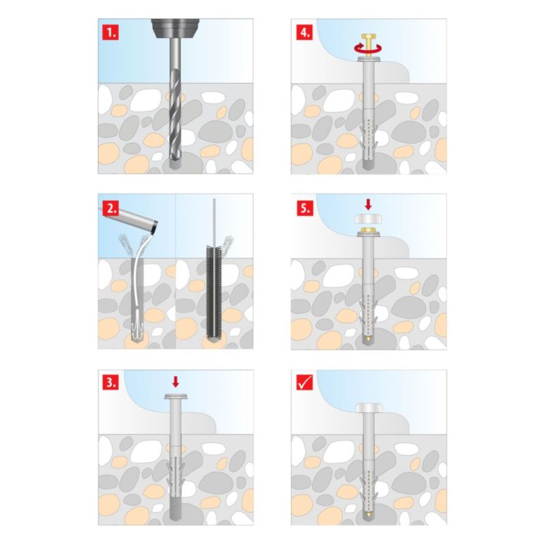 - Dübel mit Spezialaufnahme für sicheren Halt der Abdeckkappen