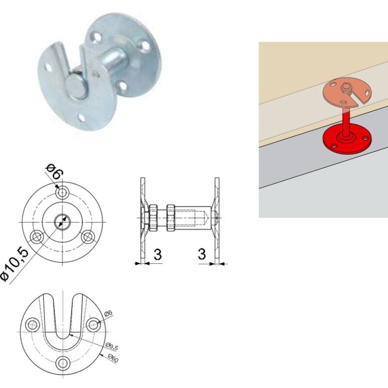Details: Festes Modell Ausladung 70 mm Modell Ausladung verstellbar von 55 bis 70 mm Verzinkter Stahl mit gelbem Dichromat.