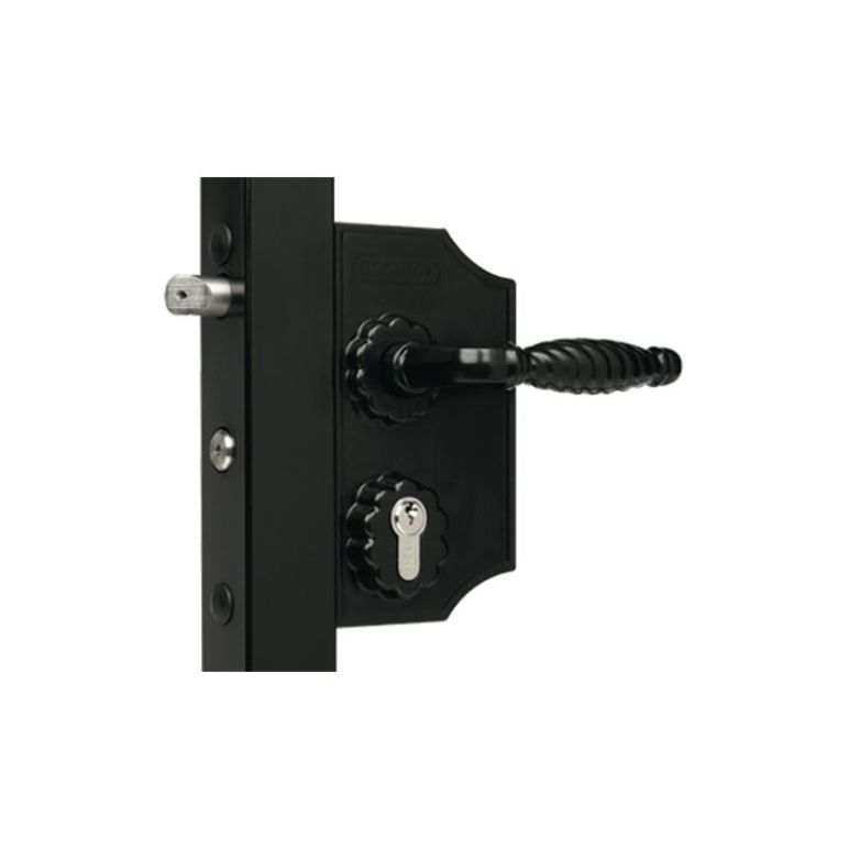 Schmiedeeisenschloss ral 9005 Schwarz Locinox Drehflügeltor Ständer + Zylinder - Profil 30 bis 50 - LAKQ3030 H2L